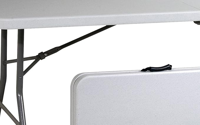 • 6 foot folding table features a heavy-duty blow-mold light grey resin top for durability and easy cleanup