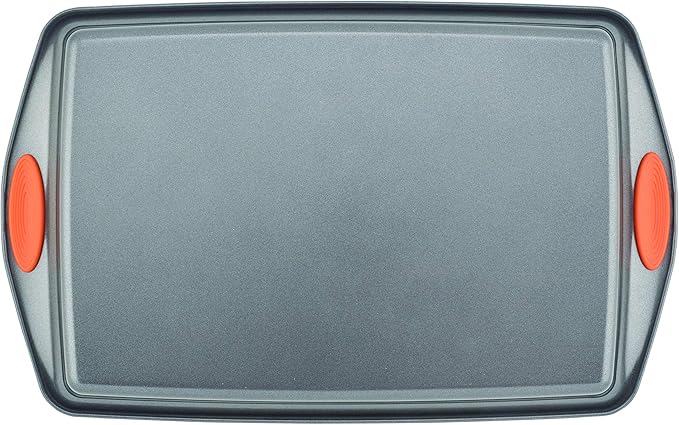 Rachael Ray 55673 Nonstick Bakeware Set with Grips includes Nonstick Bread Pan, Baking Pans and Cake Pans - 5 Piece, Gray with Orange Grips