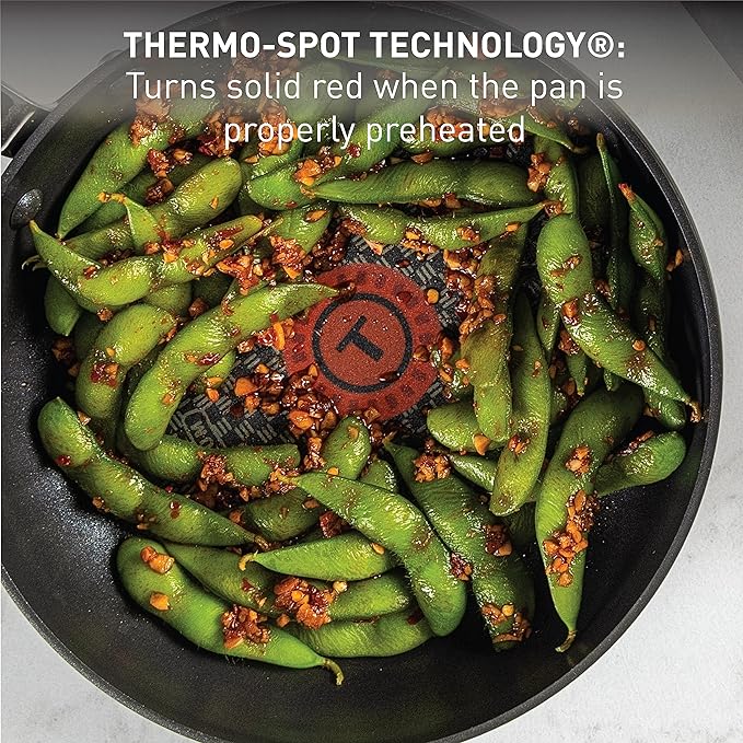 • Thermo-Spot Technology: Unique heat indicator turns solid red when pans are properly preheated so you'll know exactly when to start cooking for perfect results every time.