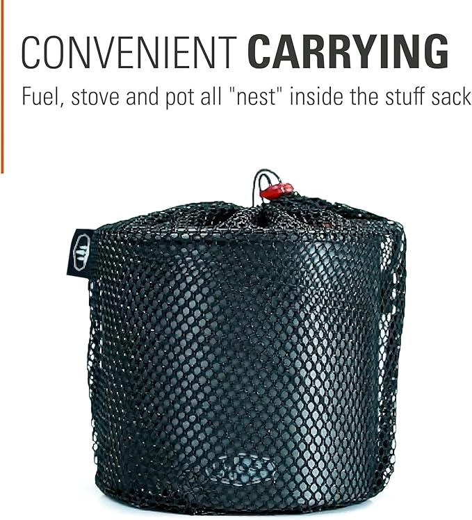 • Molded-in graduations give you consistent measurements every time; Fuel, stove and pot all “nest” inside the stuff sack for convenient carrying
