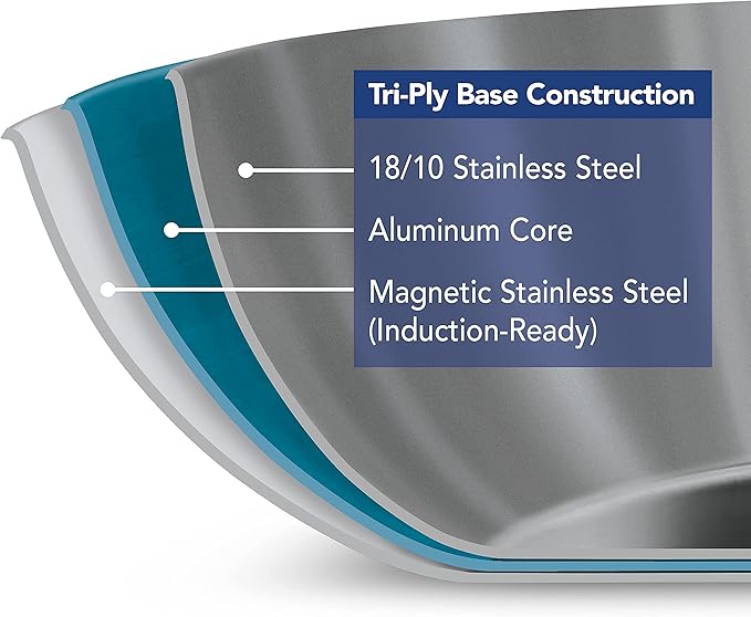 • Tri-ply construction: For precise heat distribution and top-notch cooking performance for any kitchen