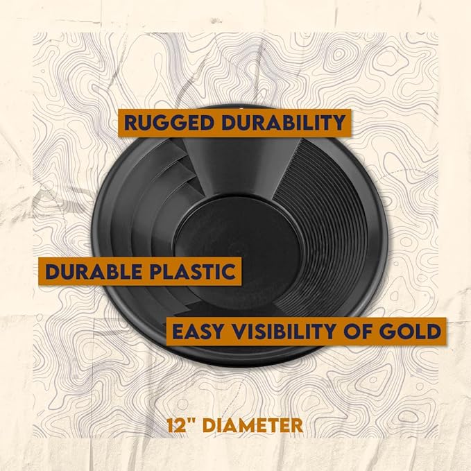• DESIGNED FOR QUICK & EFFICIENT PANNING - The ⅛” base pan volume increases gold trapping ability and allows more material to be processed per pan; Lightweight to reduce hand fatigue while panning and the gold pan even floats in the water