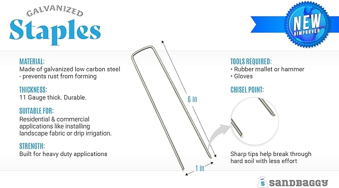• EFFORTLESS APPLICATION: SandBaggy landscape pins are made with chisel point tips at the bottom of the staples, which makes installation easier and faster