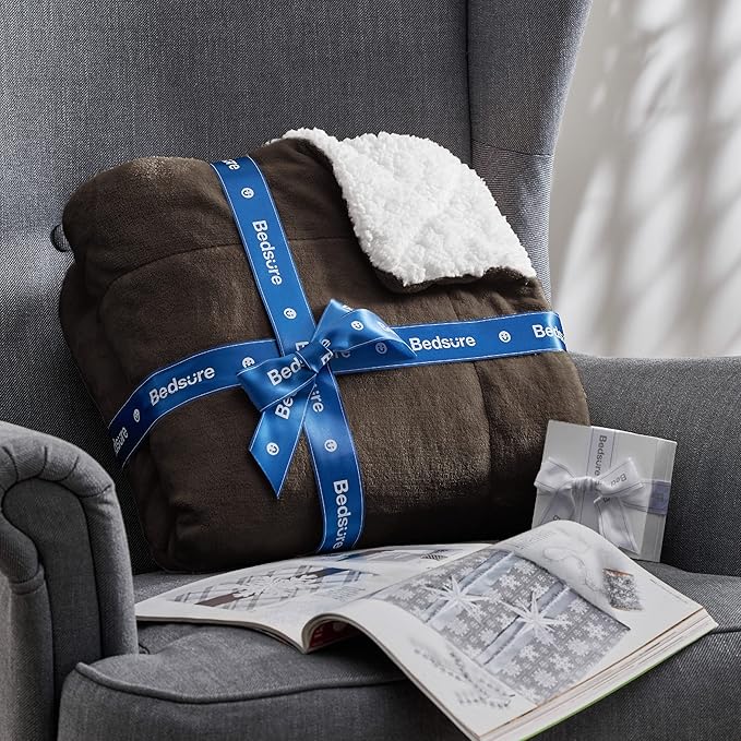 Bedsure GentleSoft Sherpa Fleece Throw Blanket for Couch - Thick and Warm, Soft Fuzzy Plush Throw Blanket for Winter, Brown, 50x60 Inches