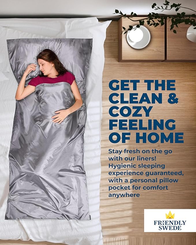 The Friendly Swede Sleeping Bag Liner — Ultralight Polyester or Cold Weather Microfiber Adult Sleep Sack; Thin Travel Sheets for Hotel; Camping Sheets; Travel Sleeping Bag with Pocket-Size Stuff Sack