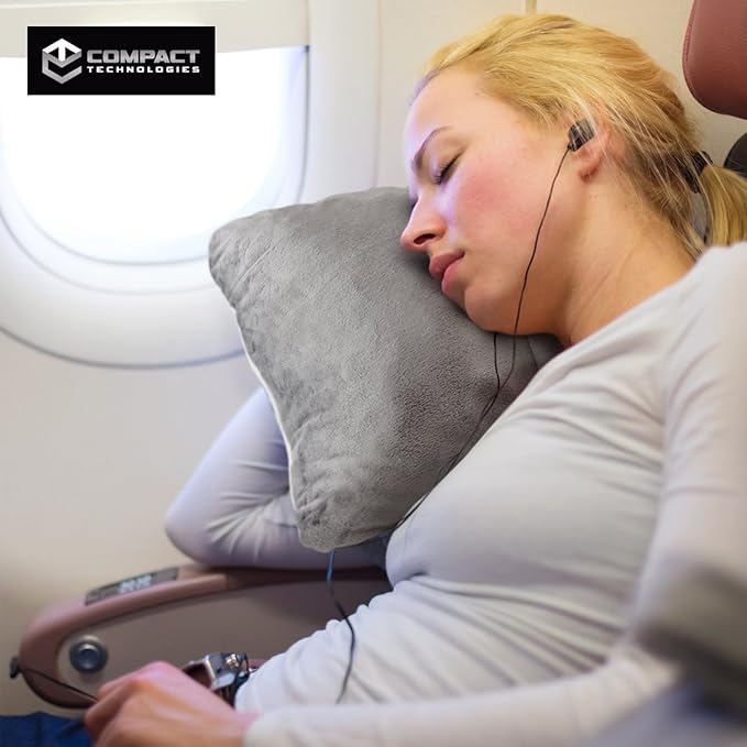 Compact Travel Pillow Made with Shredded Memory Foam and Super Soft Fleece Fabric for Ultimate Comfort in Travel. Patented Design Rolls and Compacts Small for Travel. (Grey)