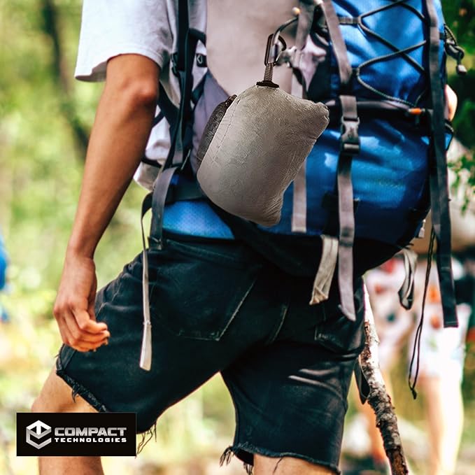 • SERIOUSLY COMPACT -- This pillow folds and compacts down small. You secure it with material flap and draw strings. "Works great and easy to use, feels bumpy to the touch but soft when you lay our head on it" You'll love how compact it is for on the go and travel, camping, etc.