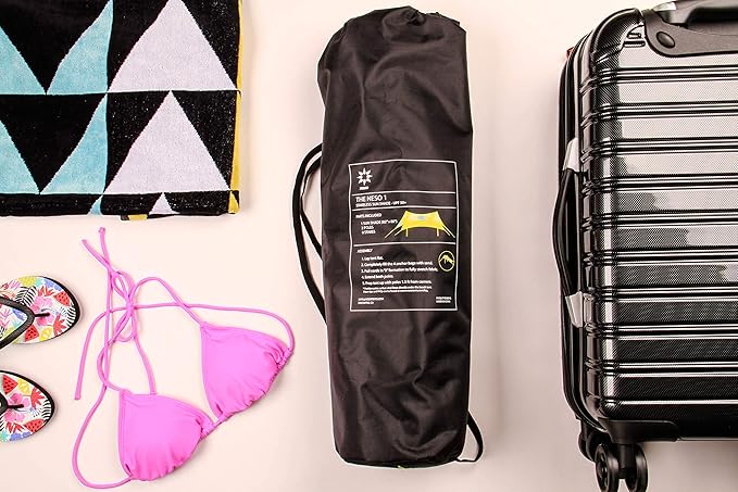 • ANCHORED BY NATURE. This revolutionary beach tent is anchored using natural resources such as sand or rocks. It is a lightweight, portable, SPF 50+, water-resistant sunshade that provides a relaxing place to watch the waves, a soccer game, or have a picnic.