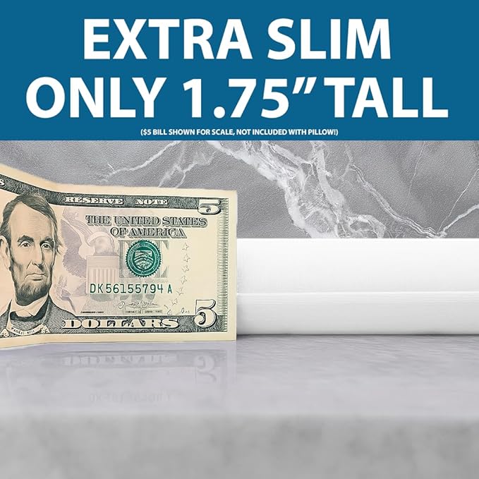 • TOP RETURN REASON: "IT'S WAY TOO THIN!" The standard sized Extra Slim pillow is for those who need an EXTREMELY slim pillow profile, or something just barely thicker than no pillow at all. It's only 1.75" high and made from premium memory foam, so your head will sink to just about an inch above the mattress.