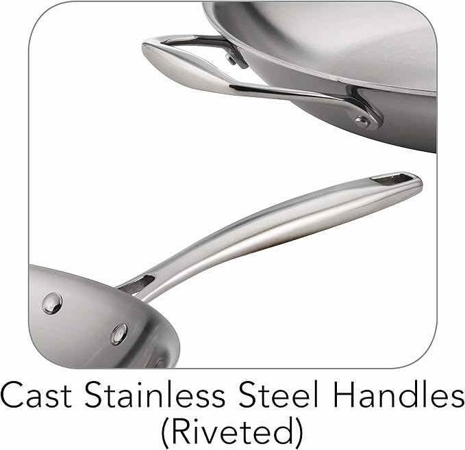 • Tri-Ply Clad Construction: Features an aluminum core for even heat distribution and precise cooking control