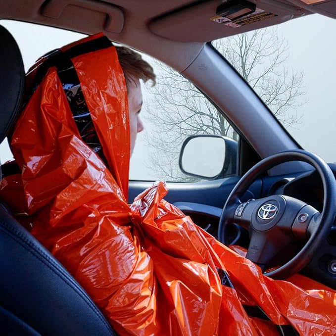 • MADE FOR EMERGENCIES: The bright orange color of this light weight sleeping bag cover helps rescuers identify you with ease. Plus, the HeatEcho material reflects 90% of your body's heat back to you, making it an essential survival tool and addition to your bug out bag, emergency shelter, camping gear or car emergency kit.