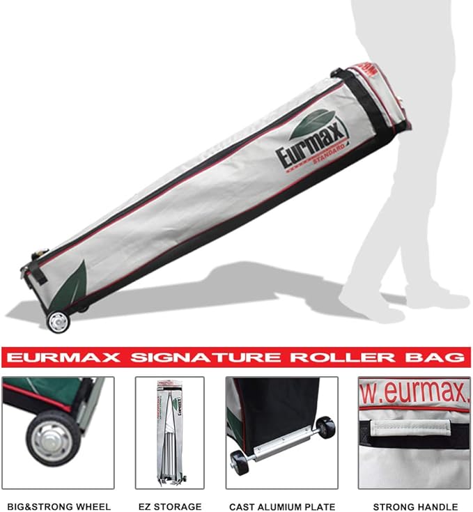 • Portable and Convenient: The roller bag with wheels and bonus sandbags make this canopy shelter highly portable and suitable for a wide range of events, from picnics to outdoor markets.It's a valuable addition to any outdoor activity.Get ready for shade, shelter, and convenience like never before.