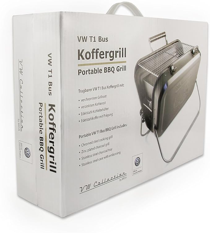 • MATERIAL: The suitcase grill is made of stainless steel 18/8 with a VW T1 Bus embossing. It makes a perfect gift for all VW fans or professional campers.