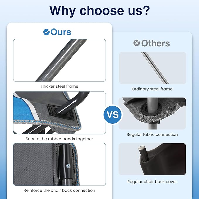 • 💪 【Maximum Loading Capacity】 With a powder coated steel frame and 600D oxford fabric make it can support up to 350 lbs and you're guaranteed a long lasting chair to enjoy outdoors all year