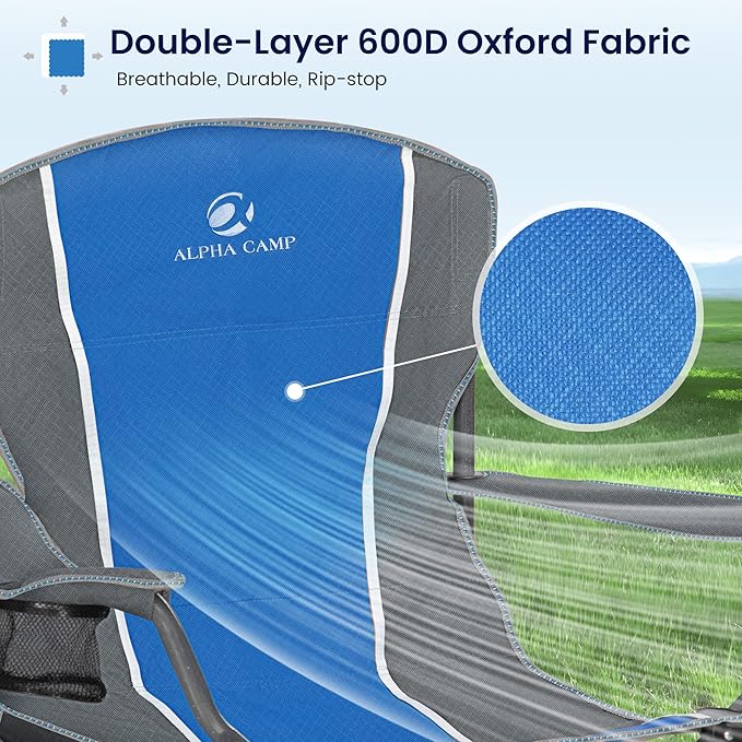 ALPHA CAMP Oversized Camping Folding Chair - Heavy Duty Steel Frame Support 350 LBS, Collapsible Padded Arm With Cup Holder, Quad Lumbar Back, Portable for Outdoor/Indoor