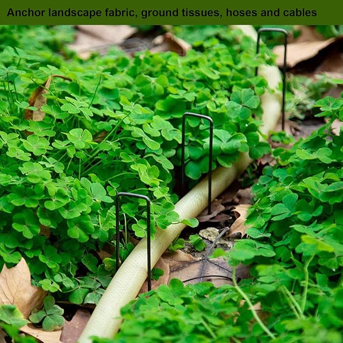 • NUMEROUS USES - Black landscape sod staples are designed to enhance your outdoor landscape fabric, patio, garden edging, yard decorations, chain link fence and countless items.Heavy duty steel stakes hold down your landscape fabric or plastic to keep weeds away from plants.