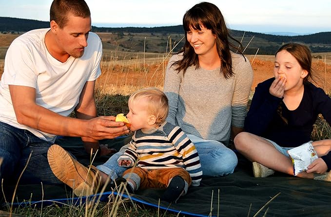 • WHY OUR BLANKET ultrasonically quilted, the 2 layers can’t slide on each other, maximizing safety; at 3.1 lb of quality materials it is THICKER THAN THE OTHERS in this price range; a special double coating has been sprayed in between the 2 layers to stop water penetrating from the blue side, making it waterproof in most situations; a secret zip storage pocket for the stuff sack and it is backed by our lifetime warranty; if your unhappy with your blanket, EVER, send in for replacement