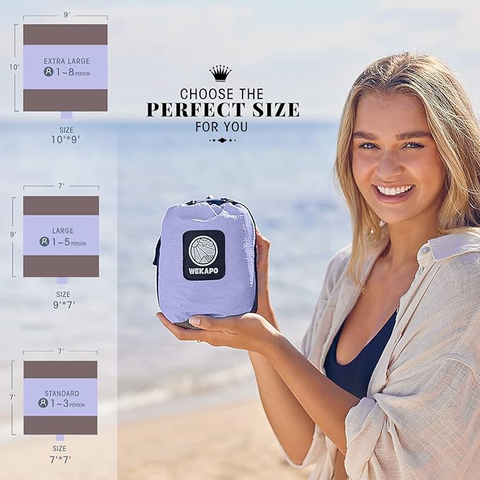 WEKAPO Beach Blanket Sandproof Waterproof, Extra Large Beach Mat, Oversized & Compact Sand Free Mat Quick Drying, Lightweight & Durable with Stakes & Corner Pockets