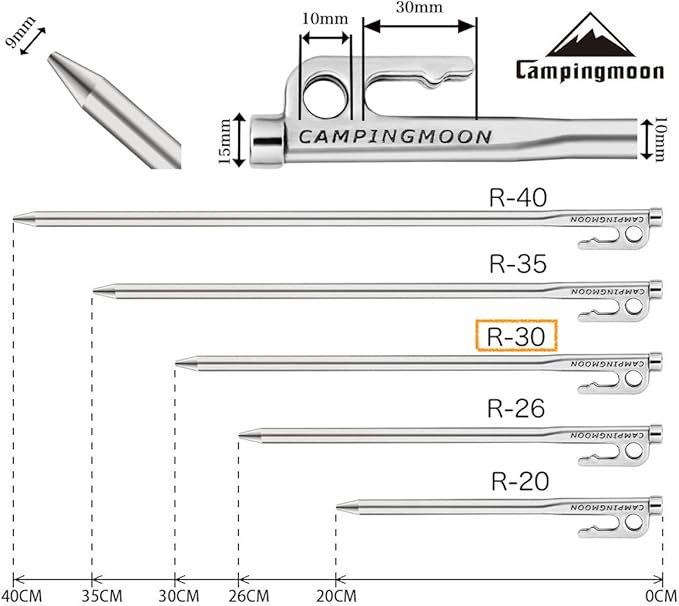 camping moon Martensitic Stainless Steel 420J2 Tent Stake R Series Power Peg Ideal for Hard Ground R-30-8P