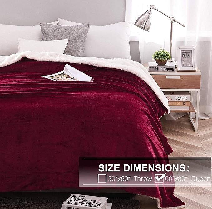 NANPIPER Sherpa Blanket Twin Thick Warm Blanket for Winter, Super Soft Fuzzy Flannel Fleece/Wool Like Reversible Velvet Plush (Wine Red, Twin Size 60"x80")