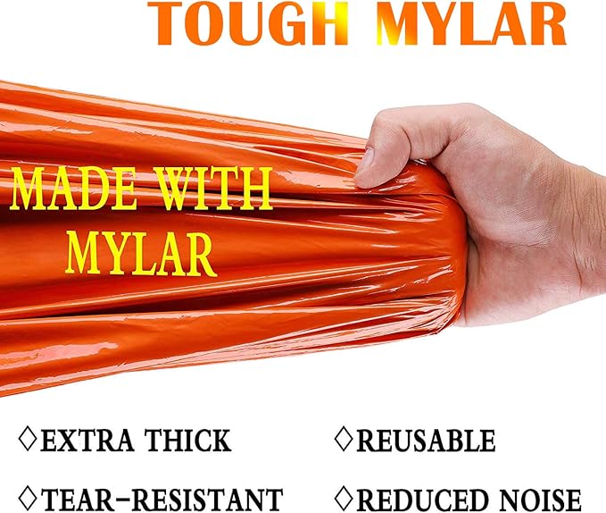 • Stay Warm And Alive In Extreme Conditions: Originally designed by NASA for space exploration, these insulating mylar bags provide compact emergency protection in all weather conditions by reflecting back and retaining 90% of a survival victim's body heat. Furthermore, the bright orange color of the waterproof sleeping bag helps rescuers identify you with ease. The emergency sleeping bag serves as your emergency blanket, survival shelter, and emergency bivy sack all-in-one