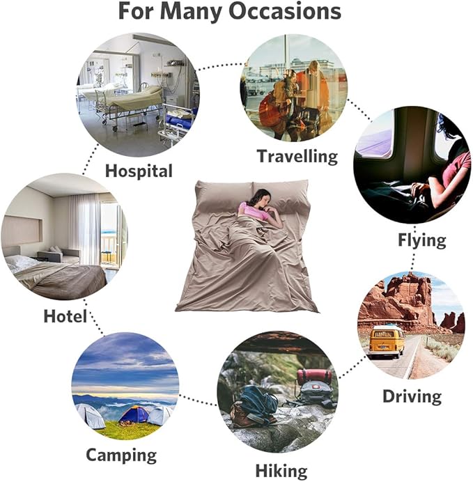 • 【Function of Sleeping Bag Liner and Complete with Pillowcase】: sleeping bag liner is breathable and comfortable, which is ideal to bring to hotels, youth hostel, or anywhere else you might travel. Take comforter off bed and use this sleeping bag liner to sleep in and it will give you a sense of cleanliness. You can use this versatile travel sleeping bag liner inside your sleeping bag to keep it clean, or use as a stand-alone sleep cover or sleeping bag in very warm climates