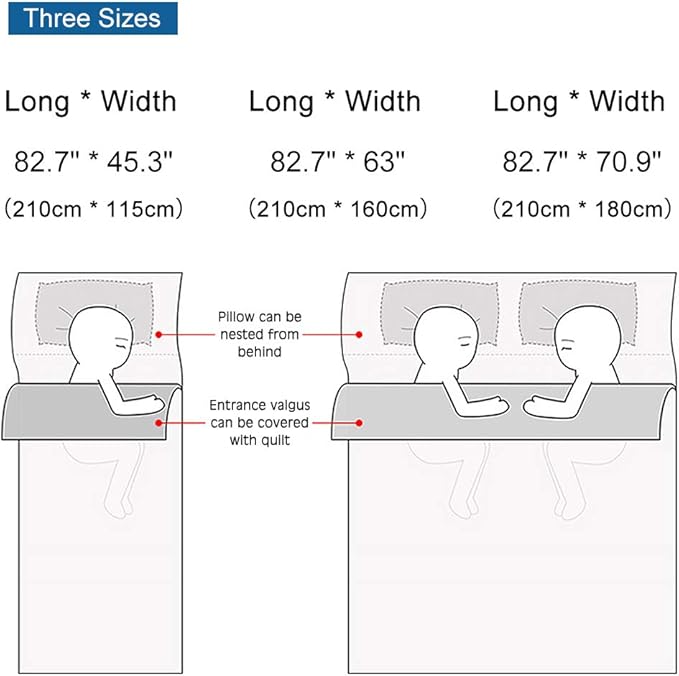 • 【Material & 3 Size of Sleeping Bag Liner】: polyester fiber, breathable, will add a few extra degrees during chilly nights, no pilling or fade, you will feel very comfortable and soft, great even for sensitive skin; three size available: 115 X 210cm/83x45’’ for one person or 160 x 210cm/83x63’’ or 180x215cm/70.9x84.6’’ for two persons, great size even for tall people to stretch out legs. The opening length is 100cm/39’’ for you to get in
