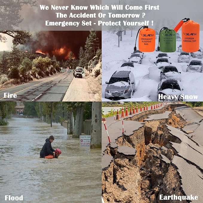 • Emergency Use and Extra-Thick Tear—Delmera Emergency Thermal Mylar Bags are ideal for all emergencies, such as travel,hunting,camping,climbing,fish on the sea. Your ultra-lightweight survival sleeping bag is constructed of 26um extra-thick mylar material with a tear and puncture resistant coating so it stands up to extreme conditions