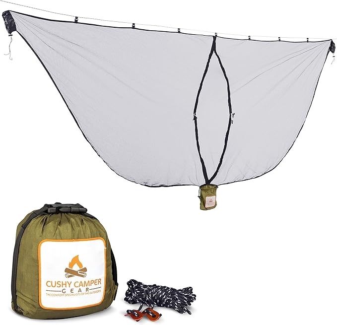 • A Breath of Fresh Air: The Cushy Camper mosquito net is made of tightly woven mesh that still allows you to see the view. Its well-ventilated design lets the breeze blow through so heat can escape. In this bug net, you won't get hot OR bothered!