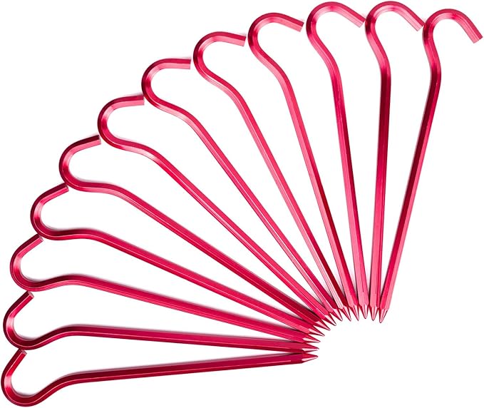 • ✔COMPATIBILITY: Aluminum outdoors tent stakes pegs are for securely anchoring tents, shelters and canopies grounded.