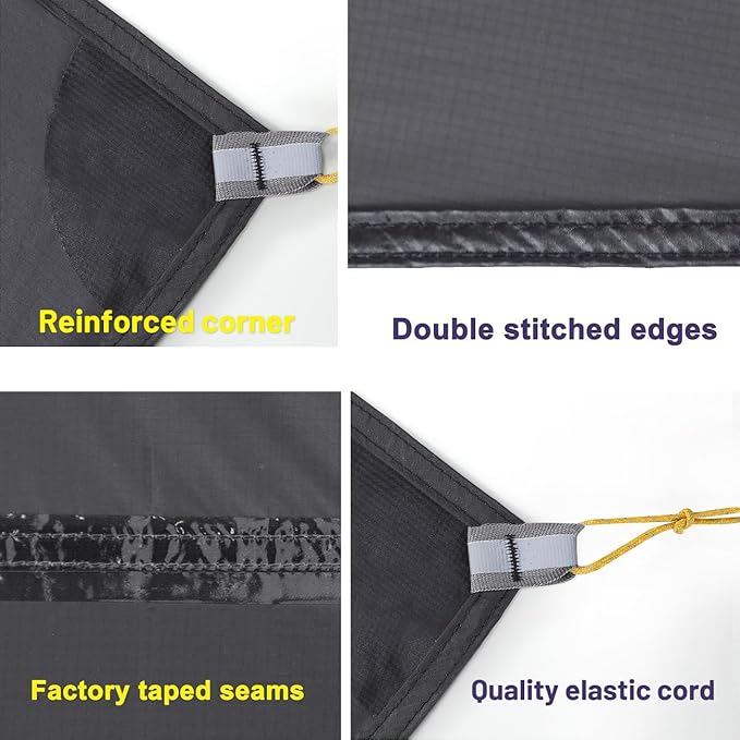 • Easy to Setup & Pack up: Unfold the footprint and lay it on ground to use in a second, can also use stakes and guyline (not included) to connect the mat through the elastic cord if you make it as a tent tarp