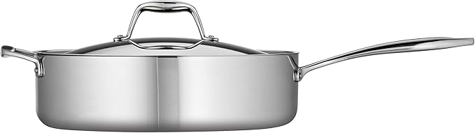 • Tri-Ply Clad Construction: Features an aluminum core for even heat distribution and precise cooking control