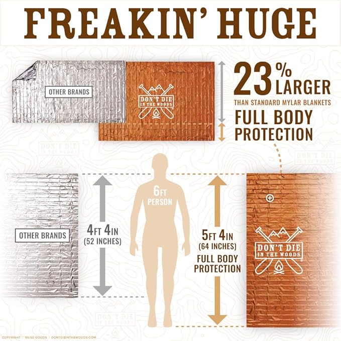 ![Don't Die In The Woods - Freakin’ Huge Emergency Blankets [4-Pack] Extra-Large Thermal Mylar Space Blankets with Ripstop Nylon Stuff Sacks + Carabiner Zipper Pack [Survival Orange]](http://campverse.us/cdn/shop/files/61rp2TCnoDL._AC_9aa4aab6-d610-4392-b48a-d29456f0c0ff.jpg?v=1760166443&width=1445)