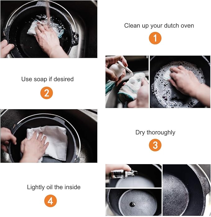 • Well known as a Lifetime Pot. Compared with pots of other materials, the Overmont Dutch Oven is made of cast iron, and will last a lifetime if cared for properly. It can be used both on the stove and in the oven at home, providing value for money.
