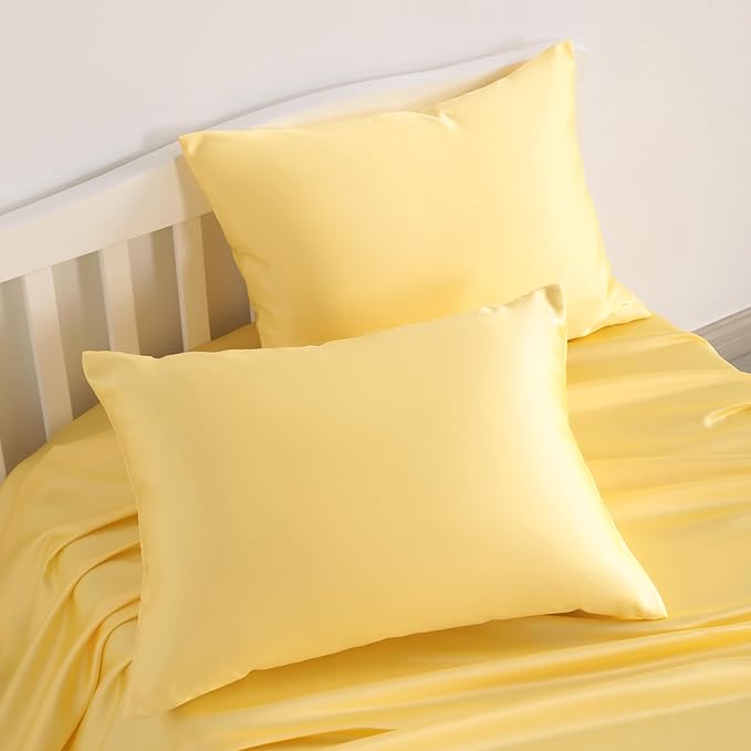 NTBAY Zippered Silk Satin Toddler Pillowcases - 2 Pack Hidden Zipper 13x18 Pillowcases - Luxury and Silky Baby Travel Pillow Covers, Yellow