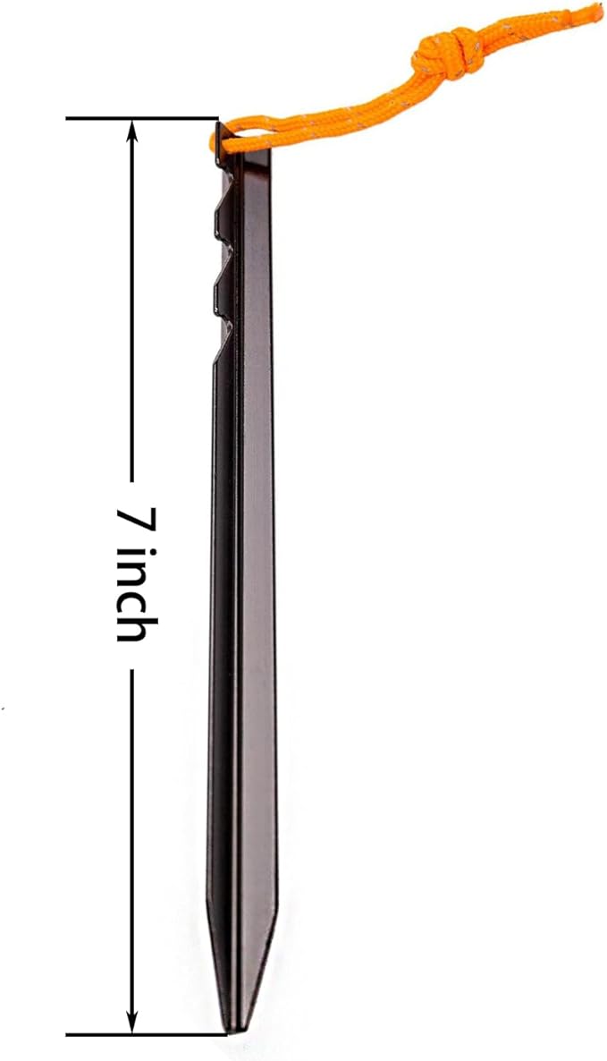 • Lightweight: 7075 aluminum ultra-light three-sided aluminum tent stakes; The Length of the stakes: 7 inch;