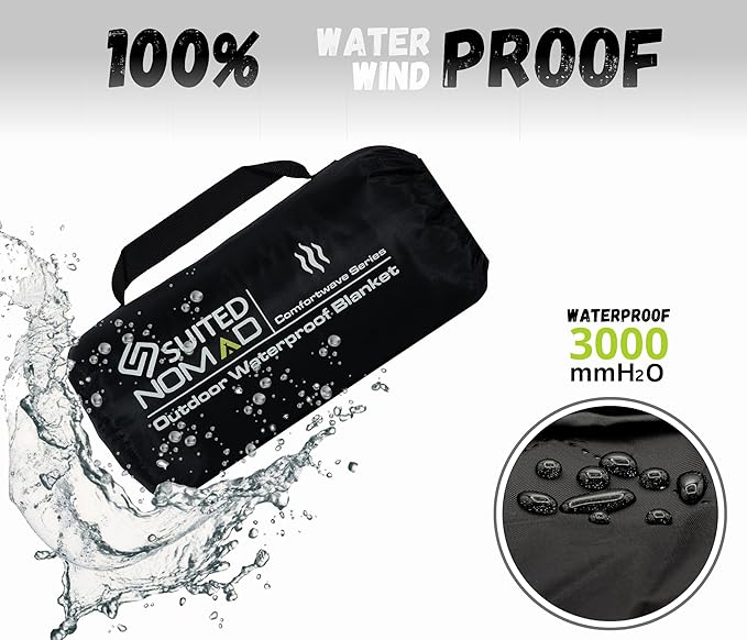 • WATERPROOF & WINDPROOF - This outdoor blanket is designed so you can enjoy your child’s event without freezing on the bleachers, appreciate a family picnic or camp trip protected from the rain or wind.