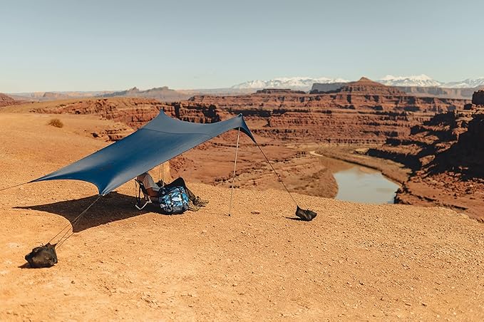 • 7 x 7 NESO TENT (Color). Made for the outdoors, your Neso Tent weighs in at 4 lbs/ 19.5 inches. It can easily fit over your shoulder or in your carry-on. Use sand or rocks to stabilize, so you’ll always have shade for your next adventure.