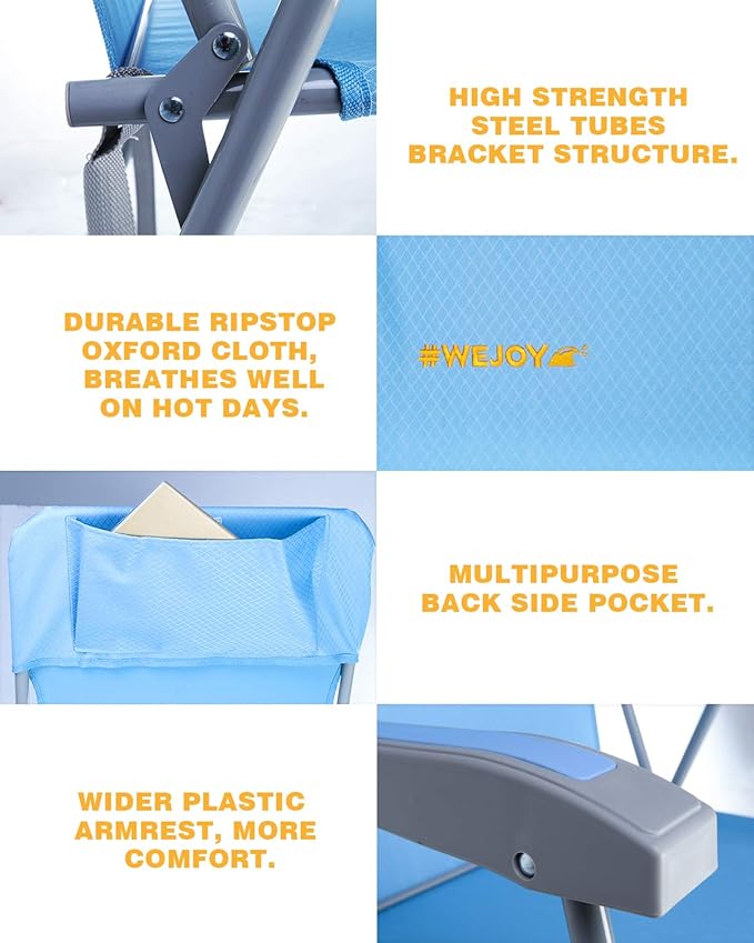 • #WEJOY High Beach Chair for Adults, Lightweight Folding Camping Chairs with Hard Armrest,Shoulder Straps,Supports 300lbs for Outdoor Lawn Concert BBQ Park