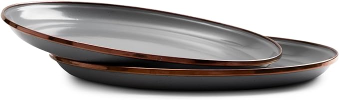 Barebones Enamel Deep Plate - Set of 2 Dinner Plates - Hand-Finished Baked Stainless Steel Trim Plate Set - Camping Kitchen and Dish Set (Slate Gray)