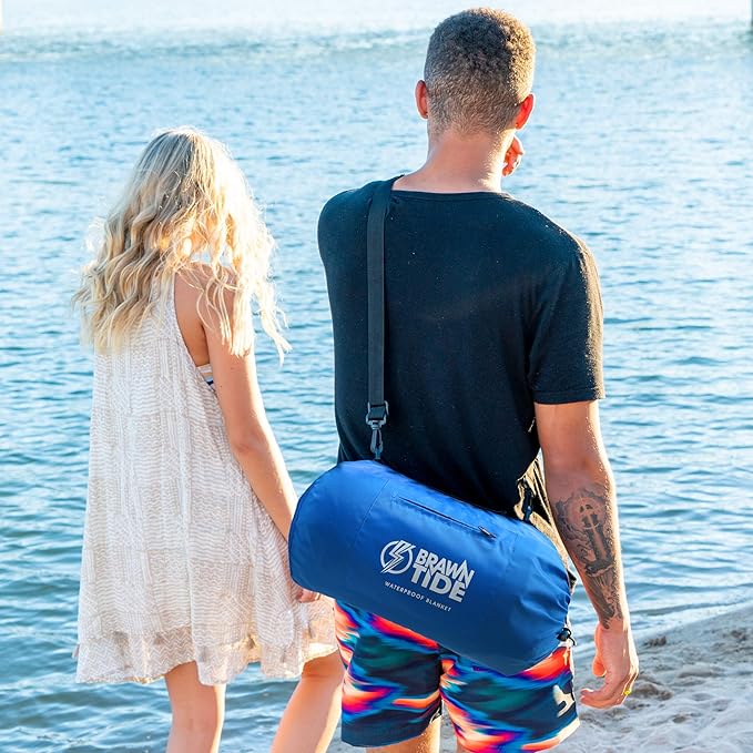 BRAWNTIDE Large Outdoor Waterproof Blanket - Extra Thick Fleece, Warm, Windproof, Sandproof, Quilted, 82" x 55", Ideal for Beaches, Picnics, Camping, Stadiums, Dogs, Car