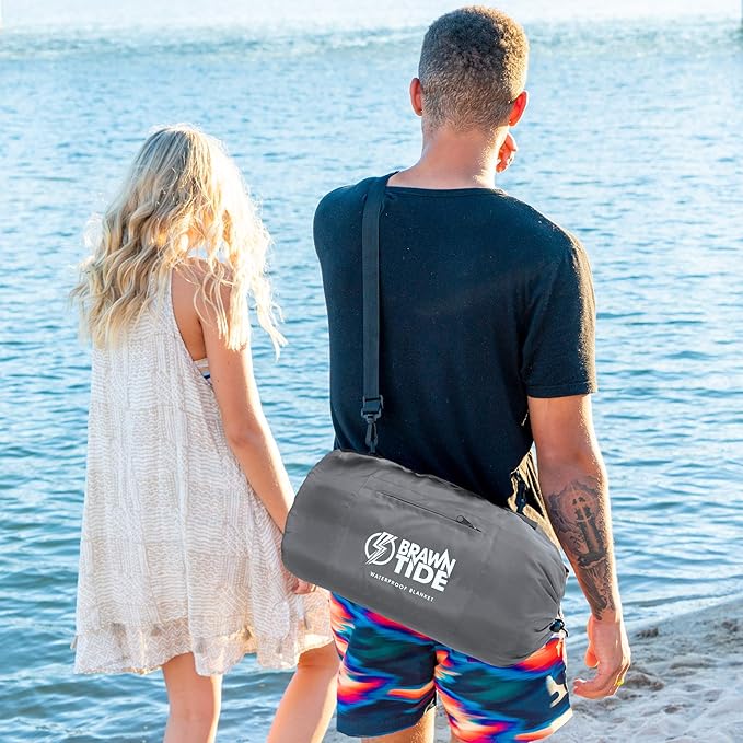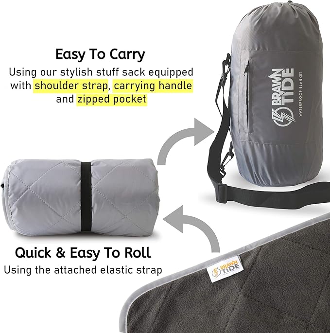 BRAWNTIDE Large Outdoor Waterproof Blanket - Extra Thick Fleece, Warm, Windproof, Sandproof, Quilted, 82" x 55", Ideal for Beaches, Picnics, Camping, Stadiums, Dogs, Car