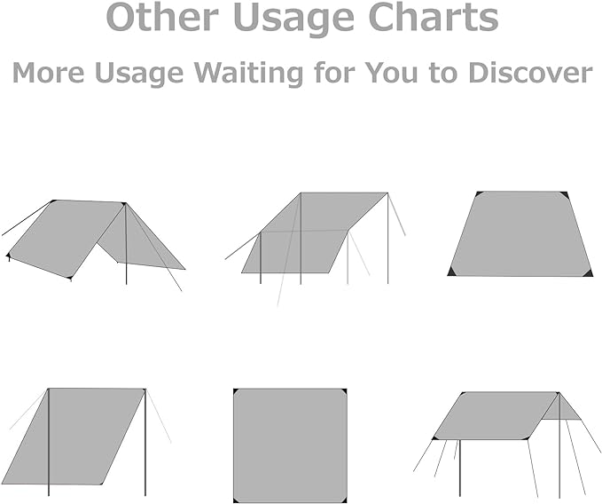 • 🍀 MULTI-PURPOSE: UV-proof tent hammock tarp is ideal for hiking, camping, picnic, backpacking, playing, boating, traveling and holiday enjoyment, preventing moisture or sunburn. Multi-functional rain fly can be used as picnic mat, tent tarp, hammock shelter, simple tent, tent footprint, ground sheet and blanket, sudden downpours, water-front base camp, instant shade etc