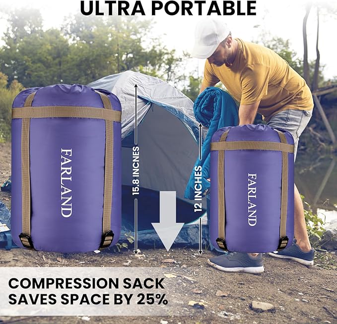 FARLAND Sleeping Bags 30℉ for Adults Teens Kids with Compression Sack Portable and Lightweight for 3-4 Season Camping, Hiking,Waterproof, Backpacking and Outdoors