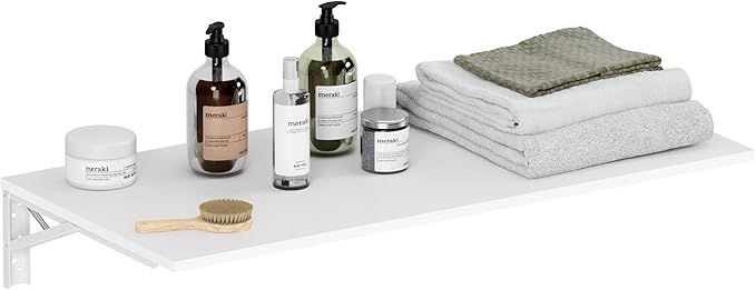 • ★SPACE-SAVING DESIGN - Fold up to use, down to store .Fold down to the wall using a simple fingertip release mechanism,You see the beautiful Ivory white color surface instead of the hardware.