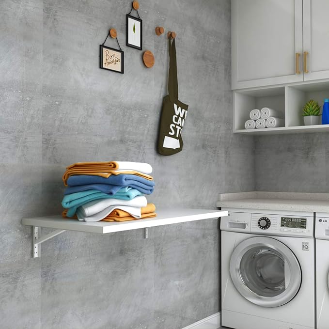 Need Fold Down Wall Mount Desk Heavy Duty Small Folding Wall Table Length 36" Width 20" Perfect Addition to Home Office/Laundry/Home Bar/Kitchen & Dining Room AC15DW(9050)