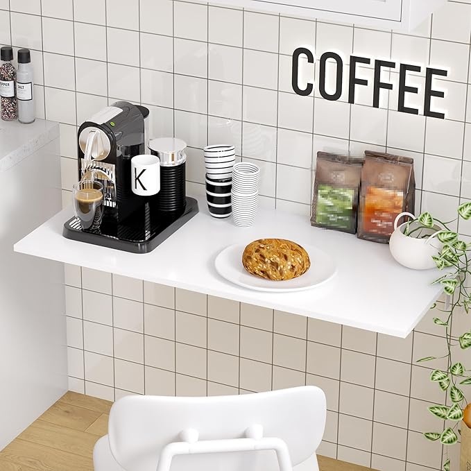 • ★ PERFECT FOR SMALL SPACES - This folding wall mounted table can fit where you need, it is a perfect addition to laundry room,home office, kitchen and dining room,even be used as a sewing table.Ivory white suits a variety of scene to use, look clean and neat.