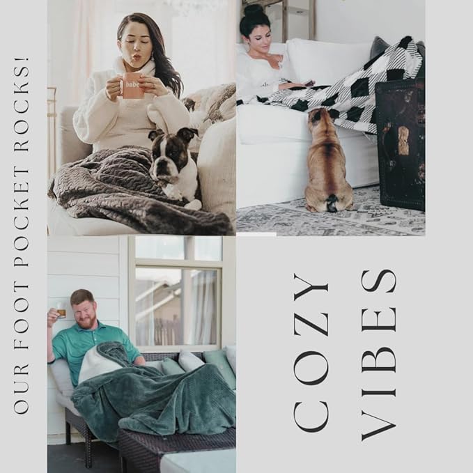 • NON-ELECTRIC FOOT POCKET BLANKET: Slide your feet into the 30” foot pocket and enjoy all-around warmth and comfort in plush fleece—no power needed.