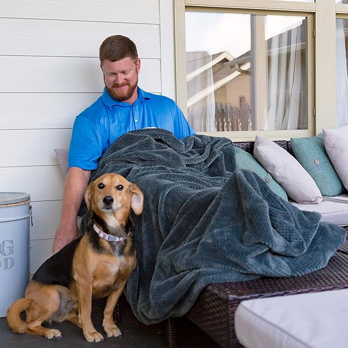 • GORGEOUS GUNMETAL FOOT POCKET BLANKET: This cozy blanket features a rich dark gray color with a subtle diamond textured pattern. Thanks to the patented foot pocket design, you can cover both your feet and shoulders for all-around comfort. It’s machine washable and dryer friendly.