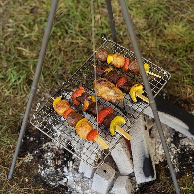 • 【LIGHTWEIGHT & PORTABLE】Camping BBQ Grill is mini size, the grill is 25.5cm*16.5, only 119g. This grill is specifically designed by experts for bushcraft and expedition camping. Engineered to fit into most backpacks. Small package is convenient to carry. It is a must have for any adventurer.